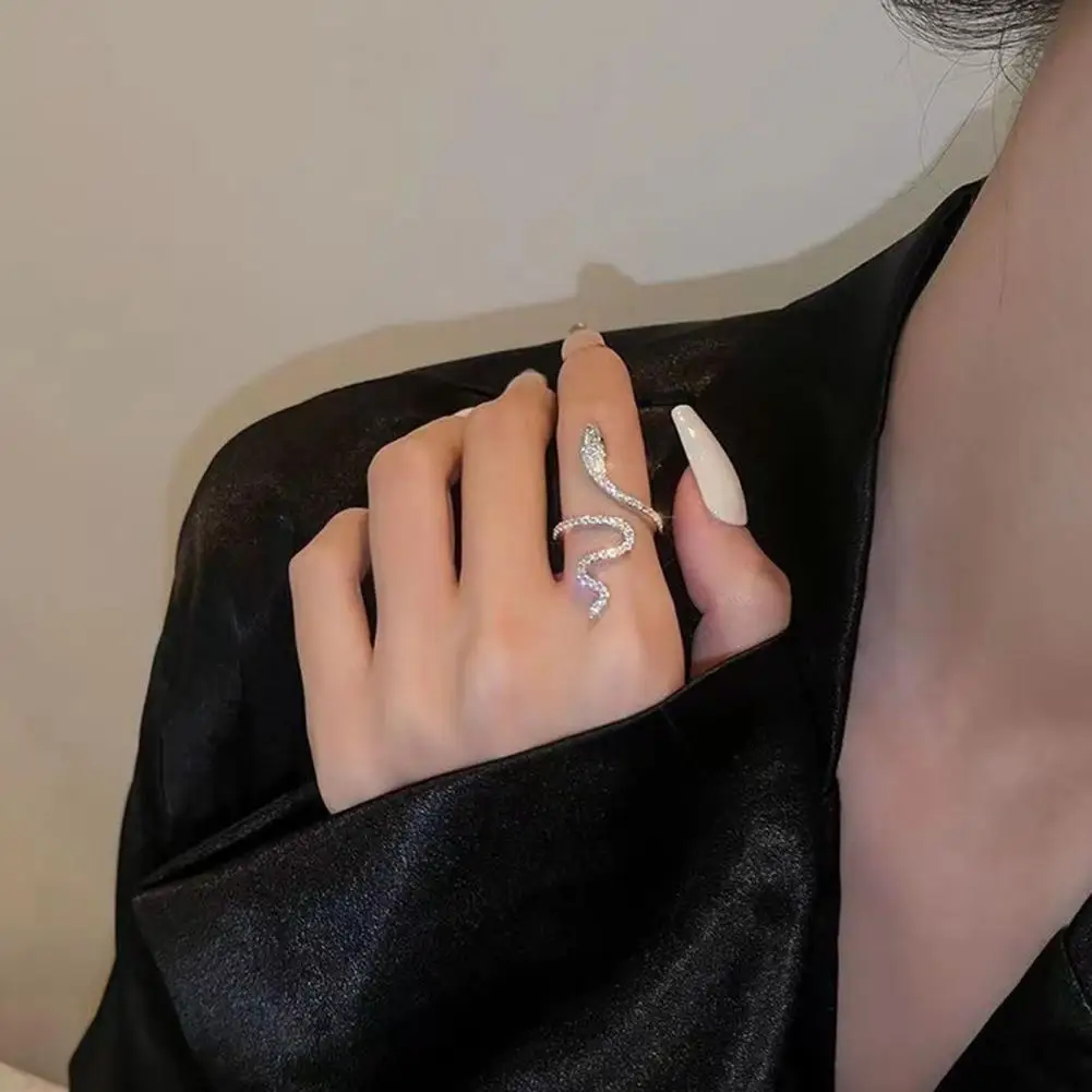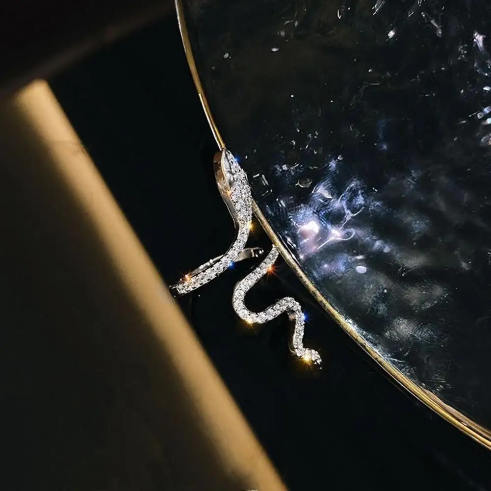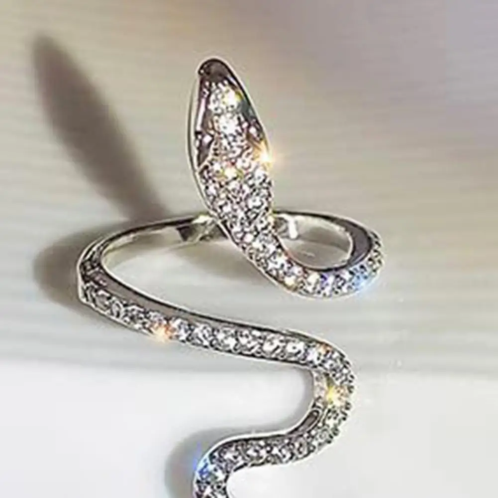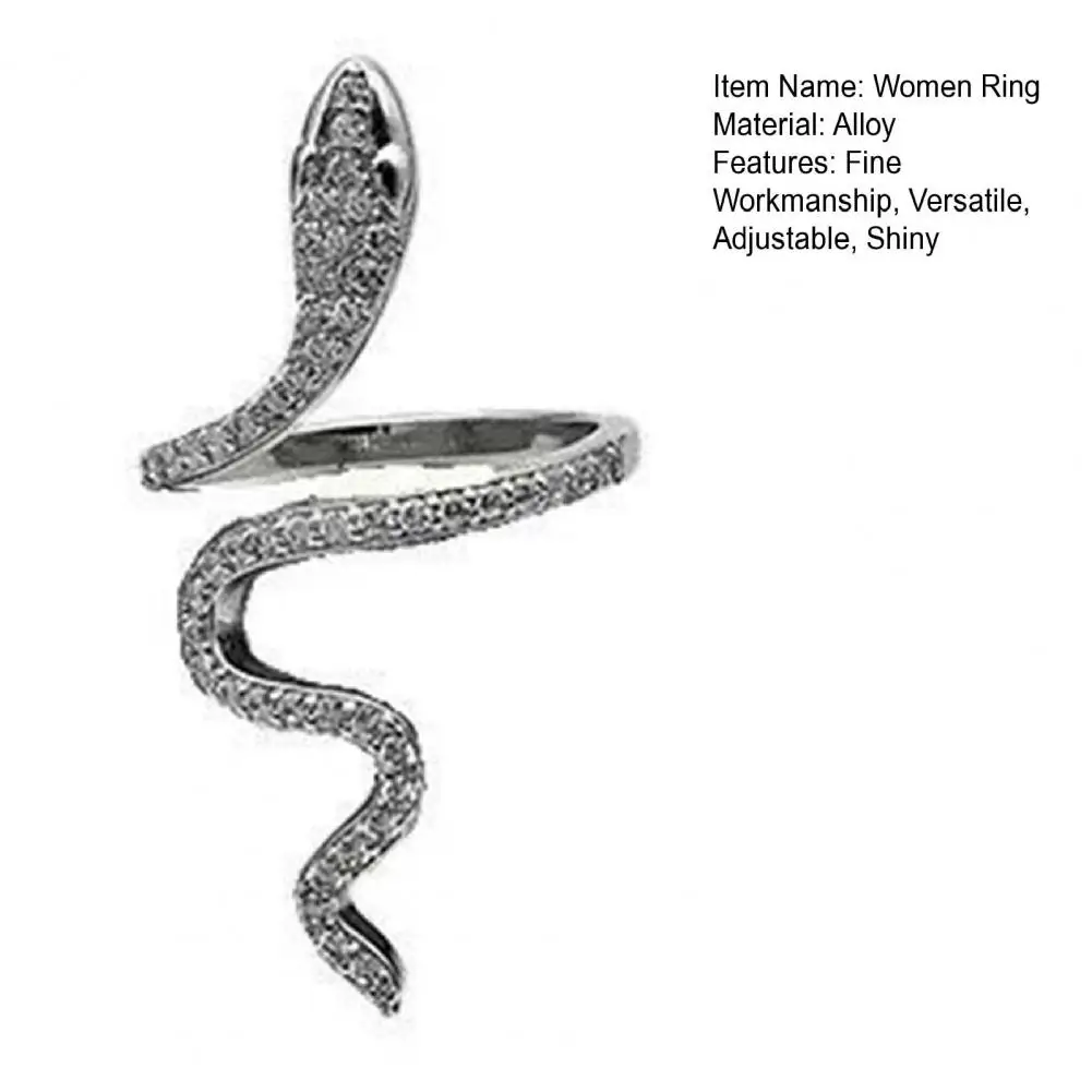 Women Ring Shiny Elegant Charming Dress Up All Match Snake Shape Rhinestone Ring Daily Life
