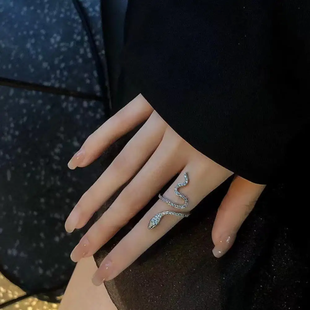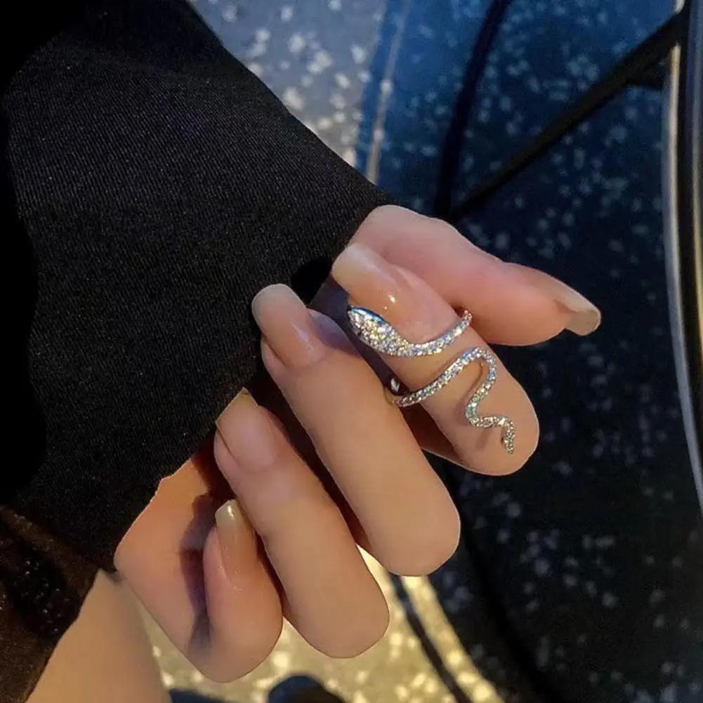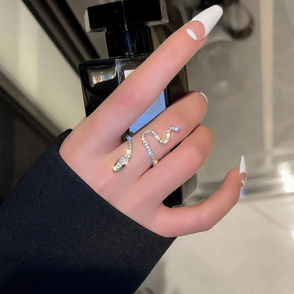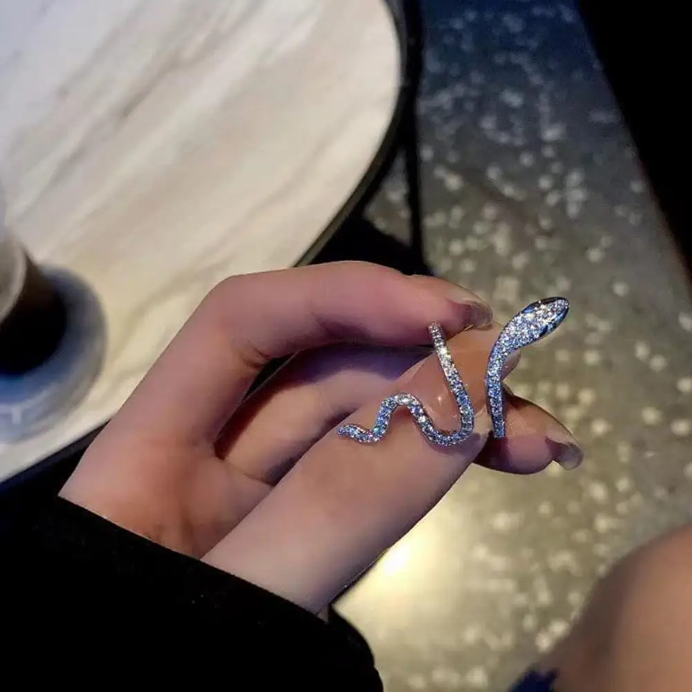 Women Ring Shiny Elegant Charming Dress Up All Match Snake Shape Rhinestone Ring Daily Life