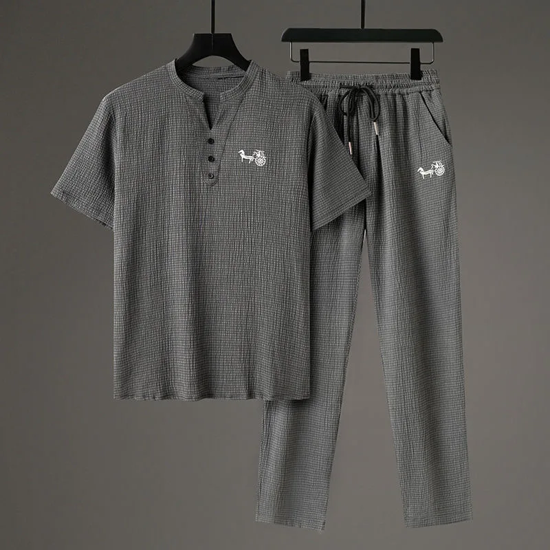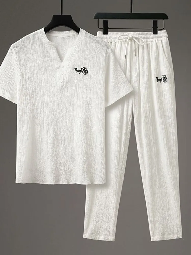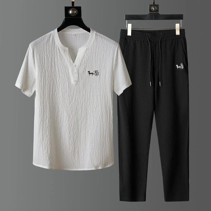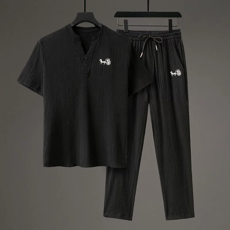Be the first to review “Summer Fashion Trend Comfortable Breathable Cotton Linen Set Men’s Casual Loose Plus Size Short Sleeve T-shirt Two-Piece Set”