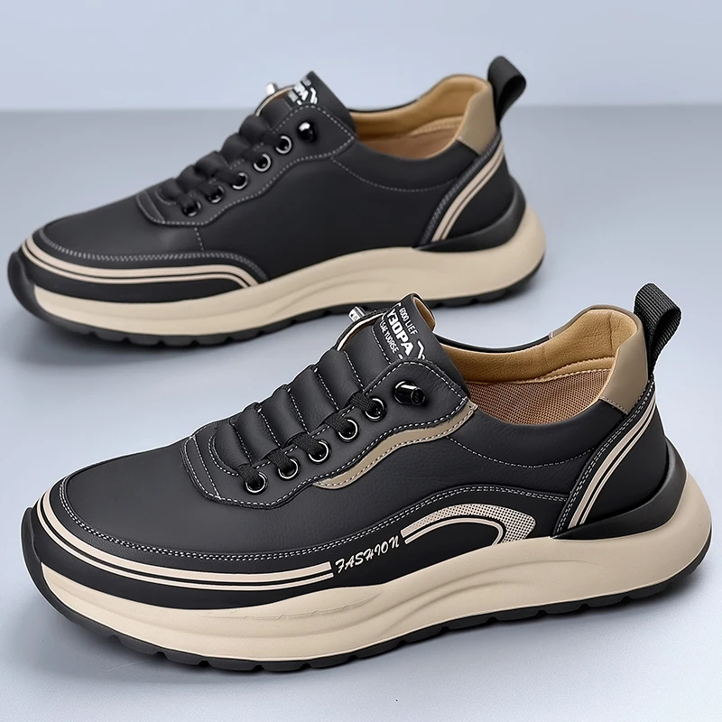 Be the first to review “Thick Sole Walking Vulcanized Shoes Hard-Wearing Male Footwear Fashion Casual Shoes Genuine Leather Antiskid Sneakers Breathable”